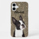 Para el amante del perro del Boston Terrier este es un gran regalo personalizado. El Boston Terrier se sienta en un fondo brillante de oro. Personalice el estuche de teléfono con cualquier nombre para que sea único.