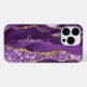 Funda Para iPhone Personalizado de Mármol de Oro Púrpura Su Nombre C