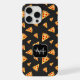 Estuche para iPhone monograma personalizado de pizzas divertidas Guay. Personaliza con tu nombre inicial. Guay y divertida pizzería patrón en gris oscuro. Jugoso vector pizza hecha con costra crujiente, queso, salami, setas, aceitunas y una rociada o orégano.