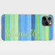 Modalidades contemporáneas de color oscuro, pastel y azul azulado brillante, turquesa acuática y acuarela a rayas color lima verde vibrante. Con espacio para personalizar o personalización con un nombre, monograma o iniciales de su elección. Hermosa, moderna y fresca cubierta para la moda y amante del arte, amante de las caderas, amante del arte y amante del humor que quiere proteger su teléfono del polvo y la suciedad, el desgaste y el desgaste. Este diseño está disponible en los fundas Apple iPhone 6, 7 y 8 Plus, 10 o X, XR, XS, 11, 12, 13 Mini, 14, 15 Plus y Pro Max. Muestra tu estilo, luce a la moda y te sientes elegante con un diseño único en un accesorio para equipos móviles de tu elección.