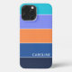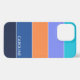 Diseño contemporáneo clásico azul azulado oscuro, naranja salmón, violeta violeta y azul turquesa acuático de las rayas de los bloques de color turquesa. Con espacio para personalizar con el nombre de su elección. Hermosa, moderna y fresca cubierta para la moda y amante del arte, amante de las caderas, amante del arte y amante del humor que quiere proteger su teléfono del polvo y la suciedad, el desgaste y el desgaste. Este diseño está disponible en los fundas Apple iPhone 6, 7 y 8 Plus, 10 o X, XR, XS, 11, 12, 13 Mini, 14, 15 Plus y Pro Max. Muestra tu estilo, luce a la moda y te sientes elegante con un diseño único en un accesorio para equipos móviles de tu elección.