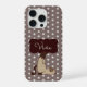Give your phone a cute and cozy look with this brown polka dot phone case. The design features a sweet cat illustration on a warm brown polka dot background, creating a playful and stylish vibe. What makes this case extra special is the personalized name, making it a unique accessory made just for you. It’s perfect for feline lovers who want something fun, personal, and different from ordinary phone cases.