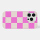 A bold pink and beige checkerboard phone case with a modern, playful look. The striking contrast adds style and personality while keeping your device chic and trendy.