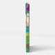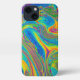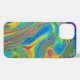 Patrón abstracto de pintura vertido de mármol en tonos psicodélicos de azul brillante, turquesa, rosa caliente, verde y amarillo brillante.