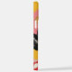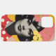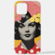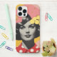 Vivid pop art phone case featuring a grayscale portrait of a stylish woman with bold makeup, set against a pink background with yellow flowers and polka dots for a retro chic look.