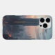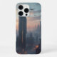 This premium phone case features unique sci-fi art, depicting a futuristic city landscape at sunset, complete with towering skyscrapers and flying drones.