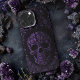 Funda para iPhone 13 Pro Max de Purple Skull. © Dark Heart Desires. Este funda gótico del iPhone 13 Pro Max es negro con un diseño floral y craneano morado.