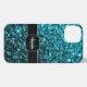 Funda Para iPhone Purpurina azul turquesa azul Aqua chispas Monogram