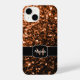 Funda Para iPhone Purpurinas de cobre marrón bronce chispas Monogram