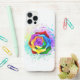 Rosa grande y floreciente con pétalos de arco iris sobre fondo blanco, pintado con salpicaduras de pintura colorida y brillante. 3.ª