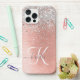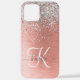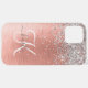 Personaliza fácilmente este diseño de estuche de teléfono de moda de moda con un purpurina brillante de bonito plateado sobre un fondo metálico rosa de color dorado.