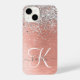 Rose Gold Brushed Metal Silver Glitter MonogramDiseñado por Birdie S