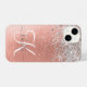 Personaliza fácilmente este diseño de estuche de teléfono de moda de moda con un purpurina brillante de bonito plateado sobre un fondo metálico rosa de color dorado.