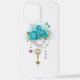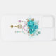 Llave de oro antiguo con rosas turquesa de moda decorados con hojas de oro blanco y cuentas rosas y azules. Color de moda. Rosas turquesas. Oro blanco. Tifanía azul.