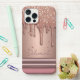 Funda Para iPhone Rose Gold Glitter Drip Custom Name Monogram