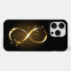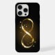 Oro, símbolo de infinito de joyas con estrellas doradas sobre fondo negro. Diseño con estrella dorada.
