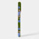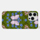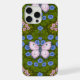 Funda Para iPhone Simetría de mariposas y flores, azul y rosa