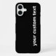 Este estuche de teléfono negro asequible tiene texto blanco que puede editar para mostrar un mensaje personalizado.