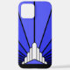 Un patrón de sol de estilo Art Deco clásico creado en azul. Un patrón icónico del sol saliendo por detrás de un estilizado edificio de estilo Art Déco. Un diseño sencillo pero elegante, fiel a la época.