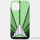 Un patrón de sol de estilo Art Déco clásico creado en verde. Un patrón icónico del sol saliendo por detrás de un estilizado edificio de estilo Art Déco. Un diseño sencillo pero elegante, fiel a la época.