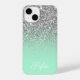 Funda Para iPhone Sparkly Faux Silver Purpurina y Mint Green Ombre