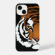 Hermoso arte vector abstracto minimalista de cabeza tigre frente a frente en colores llamativos.