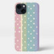 Timeless Polka dots in cream on pastel shade background of Pink, Green, Blue and Purple stripes iPhone 13 case.