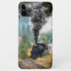 La locomotora número 19 imagen a color de un tren de vapor que se acerca en las vías del tren que emite humo gris de su manto, la pista está flanqueada por árboles en cada lado