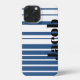 Funda Para iPhone Trendy Blue Striped Custom Name iPhone Case