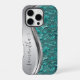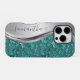 Funda Para iPhone Vaquera Turquesa Plateado Falso Cuero Repujado