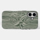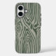 Este es un Funda para iPhone 16 de Apple. La cubierta tiene un bonito patrón de grano de madera gris y verde con un fondo gris con líneas de grano de madera verde. Las líneas de grano de madera tienen un patrón ondulado y varían en grosor. Hay pequeñas motas redondas y verdes diseminadas por el patrón.