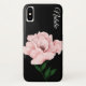 Bonito funda iPhone X hecho en negro con gráficos de una gran flor rosa con tallo verde. Personaliza el texto blanco para ti mismo o como un gran regalo para ella.