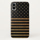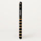 funda de moda para iPhone X hecho en negro con un patrón falso de punto de polka purpurina oro, a lo largo de la parte superior del funda y rayas, a lo largo de la mitad inferior, del funda. Personalizar para agregar su propio texto.