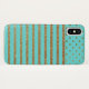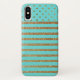 Moda funda iPhone X hecho en turquesa con un patrón de puntos polka purpurina de oro falso, a lo largo de la parte superior del funda y rayas, a lo largo del resto del funda. Personalizar para agregar su propio texto.