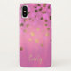 Moda funda iPhone X hecho en un aspecto de Relieve metalizado rosa con puntos de tono rosado y dorado, en la parte superior. Personalice el texto, en la parte inferior del funda, para adaptarlo a sus necesidades. Elija el estilo de funda que necesita antes de realizar el pedido.