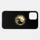 Joyería, oro y símbolo yin yang negro sobre fondo negro. Oro yin yang.