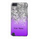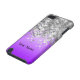 Personalice fácilmente este falso bling metálico de plata femenino elegante elegante de la chispa del purpurina y fondo púrpura de la mirada del satén con sus iniciales de encargo del texto, del nombre o del monograma para hacer un regalo personalizado sofisticado único. Haga clic el personalizar para ajustar el texto/el tamaño o el estilo de fuente. OBSERVE POR FAVOR la plata no es metálico, brillante, brillante o purpurinoso.