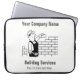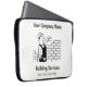 La funda para portátil de la empresa de construcción tiene una ilustración de un constructor así como los detalles de la empresa de construcción. Funda para portátil de constructor. Promoción de servicios de construcción en una funda de computadora personalizada
