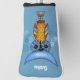 Esta personalizado cubierta del club de golf para sus putters tiene un búho abstracto con ojos redondeados, cuerpo amarillo de cabeza azul y plumas en rojo, amarillo y azul sobre un fondo azul con círculos y guiones. Personalizar tu nombre con la plantilla.