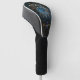 Nueva era astrología oro falso purpurina gráfico Sol en un estrellado cosmico fondo azul de medianoche. El nombre de monograma y el inicial de la tipografía de tipos de letra modernos pueden personalizarse o eliminarse fácilmente. Una elegante cubierta de cabeza de golf inspirada en el zodiaco para llevar su equipo deportivo y de ocio al futuro.
