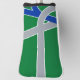 Cubierta de cabezal de golf con un diseño con la bandera de Albany, Oregón. Una bandera verde, gris y azul