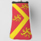 Portada de golf con diseño con bandera del condado histórico de Anglesey, en Gales, Gran Bretaña; bandera roja con chevron amarillo y tres leones; los brazos atribuidos de Hwfa ap Cynddelw, la insignia tradicional del condado