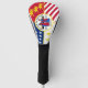 Cubierta de la cabeza del golf con la bandera de la ciudad de Detroit, Michigan; bandera roja, blanca y azul con las barras y estrellas, la flor de lis, los dragones y el sello de la ciudad