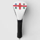 Cabeza de golf cubierta con la bandera de Montreal, la ciudad más poblada de la provincia de Quebec, Canadá. Bandera blanca con cruz roja, pino blanco, azul Fleur-de-lys, rosa roja de Lancaster, roca de champán y cardo