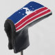 Tapa de putter de golf con bandera de la ciudad de Richmond, Virginia; bandera azul con rayas rojas y blancas, con rayas blancas y silueta de hombre trabajando en el río James bateau por el río James