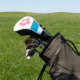 Cubierta de cabezal de golf con un diseño con la bandera de Salem, Oregón. Una bandera blanca y azul con una flor de cerezo rosa
