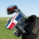 La bandera de la República Dominicana es una cruz blanca con el escudo de armas nacional en el centro. Los colores usados en la bandera son azules, rojo, blanco. La proporción de la bandera de la República Dominicana es 2: 3. La bandera de la República Dominicana fue adoptada en 1908. El primer uso del diseño actual de la bandera estaba en 1844. El cambio pasado al diseño actual de la bandera de la República Dominicana estaba en 1908.