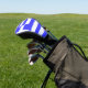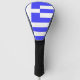Cabecera de golf con la bandera de Grecia en nueve franjas alternantes azul y blanco. Para representar al Cristianismo Ortodoxo Oriental, hay una cruz en la parte superior derecha. Una manera perfecta de compartir tu amor por todas las cosas griegas en el Día de Oxi o en cualquier momento. La imagen aquí ocupa todo el espacio de diseño, usando un poco de licencia artística para hacer que la bandera luzca mejor en este artículo.