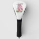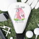 This cute monogram golf head cover features a stylish blush pink watercolor golf bag filled with clubs, surrounded by a touch of green grass. The design cleverly incorporates a simple serif font initial monogram on the bag, seamlessly blending into the bag's design. Below the monogram, the full name is elegantly displayed in script typography, adding a personal touch. The monogram is currently in a dark gray, almost black, but can be customized to your preferred color. Perfect for the lady golfer in your life, this fun and stylish golf head cover makes a great gift for Christmas, birthdays, Mother’s Day, or any special occasion. Personalized Monogram Golf Head Cover Initial Name Blush Pink Watercolor Golf Bag Cute Girly For Her.