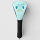 Esta impresionante cubierta de controlador de golf incluye un lindo personalizado de un búho azul con ojos somnolientos, un pico abierto y unas plumas adorables. El búho sostiene un globo azul en polvo. Hay un texto azul pálido en el globo que dice "Niño chico". Este es el regalo perfecto para celebrar a un bebé recién nacido.